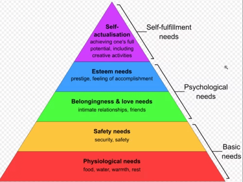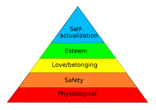 “Lower physiological and security needs were placed on the bottom of a hierarchy of prepotency, meaning lower needs, like the physiological needs for food and safety, tend to be given priority over other needs when not satisfied”.