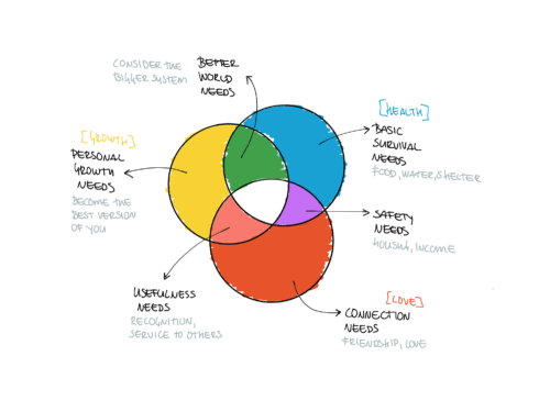 Dennis Hambeukers, a design thinkker. brings another thought-provoking set of arguments for a circular model. He argues the dangers of thinking in a hierarchical way similar to Maslow’s pyramid. He argues that this linear thinking of self-actualization is destroying the world.