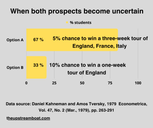 In other words, when both options become uncertain and the difference is smaller, we take the more significant risk for a bigger gain.