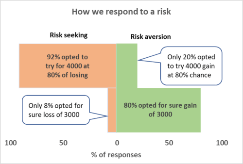 We can notice that when the students chose the surest option of smaller gain, which is 3000 over the risky larger gain, which is 4000 at 80 per cent probability.
