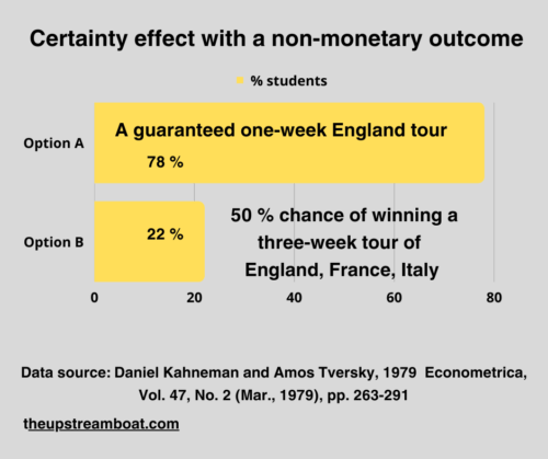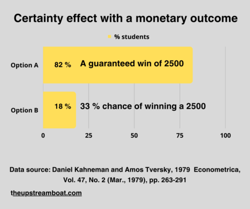 Kahneman and Tversky argue that the certainty effect contributes to both decisions.